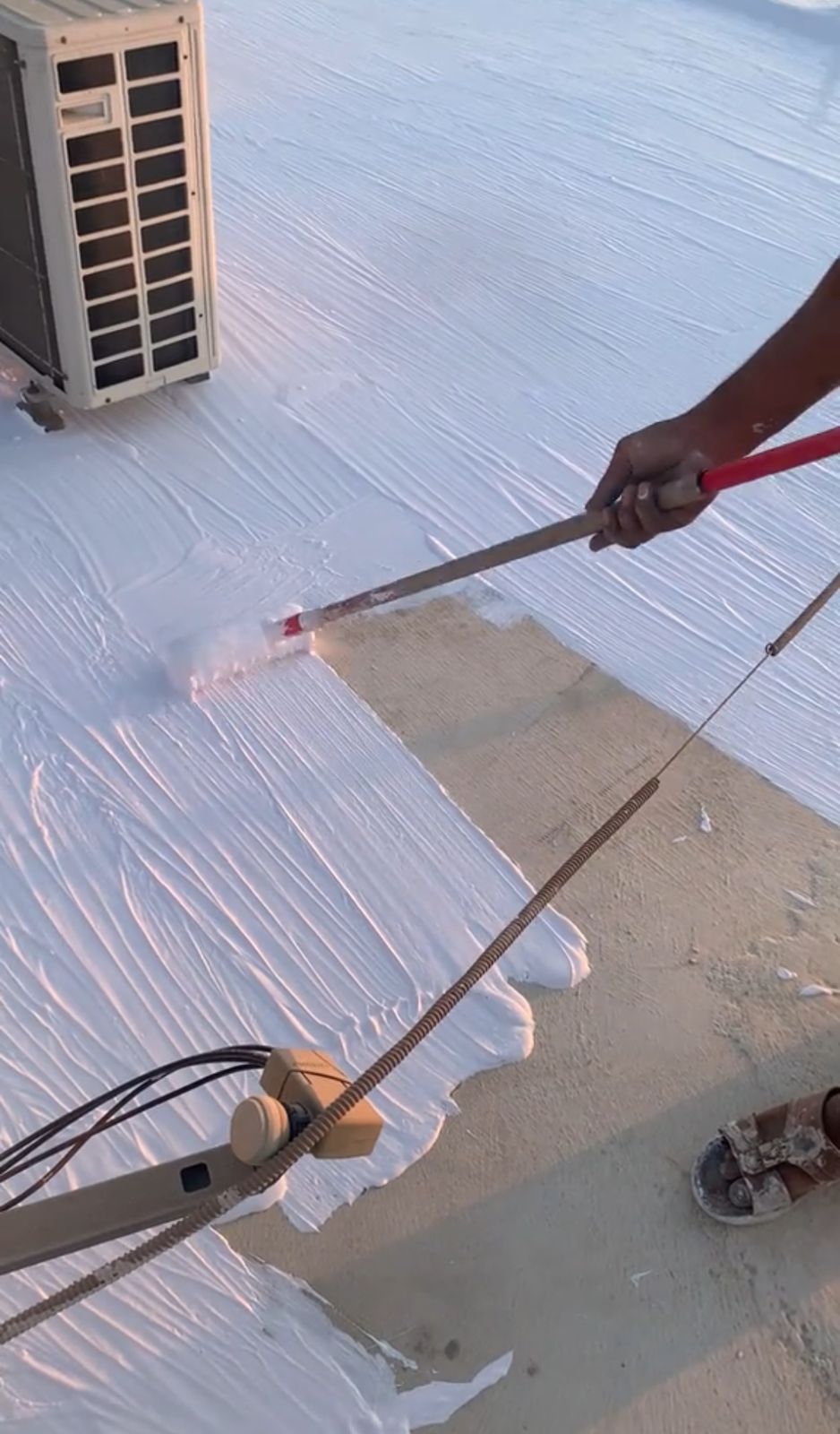- عزل الفوم (البولي يوريثان): الحل الأسرع والأكثر كفاءة كونه يعمل كعازل مائي وحراري في وقت واحد.