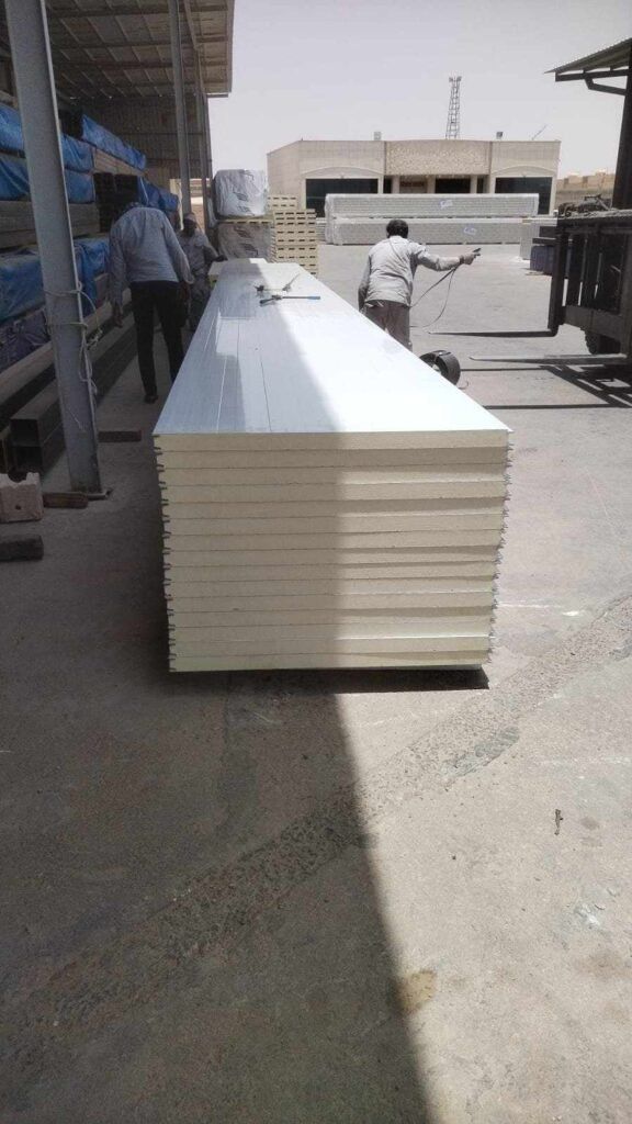 عبارة عن ألواح مسبقة الصنع تتكون من طبقتين من الصاج المجلفن (أو الألمنيوم) يتوسطهما مادة عازلة بكثافة عالية مثل “البولي يوريثان” أو “الصوف الصخري”. هذا التكوين يمنح الألواح قوة هيكلية هائلة مع قدرة فائقة على العزل.